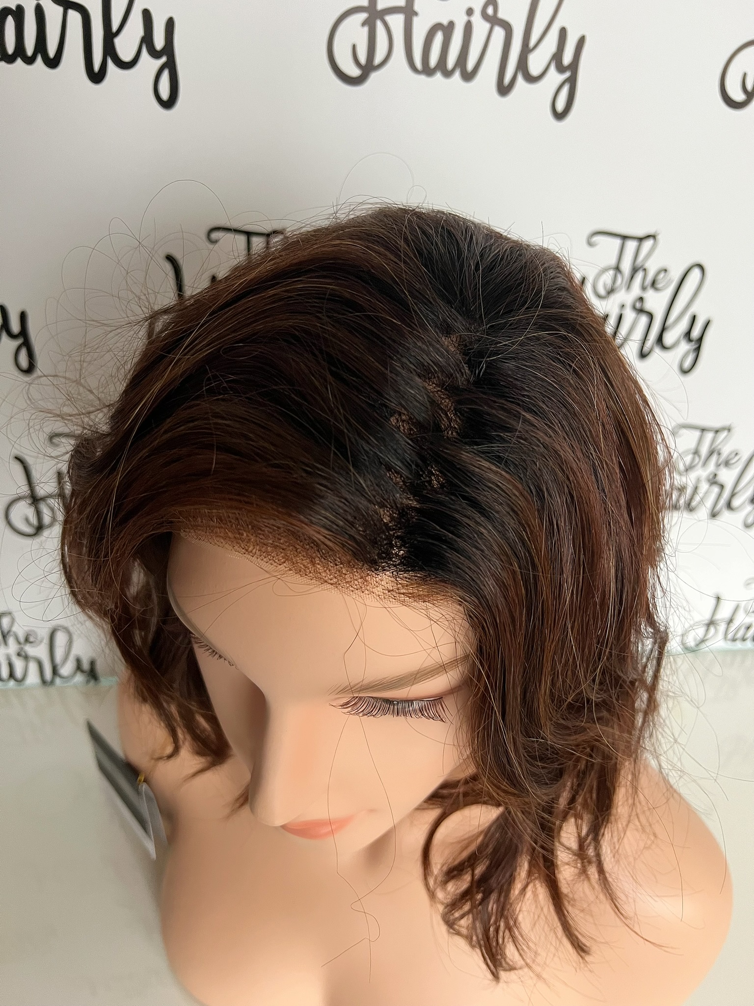 Komfortowy czepek z monofilamentem oraz nowatorską warstwą front lace z przodu gwarantuje rozmytą linię włosa dzięki czemu uzyskujemy bardzo naturalne przejście pomiędzy peruką a skórą. Częsciowo ręczne szycie włosów sprawia iż włosy wyglądają niesamowicie naturalnie – sprawiając wrażenie jakby wyrastały ze skóry. Duża ilość taśm po bokach oraz z tyłu czepka pozwala uzyskać niesamowitą objętość fryzury. W efekcie, czepek jest bardzo dobrze dopasowany do głowy, lekki, przewiewny oraz komfortowy. Monofilament (mono top dający efekt mikroskóry) to cienka warstwa siateczki do której włosy są szyte ręcznie – dzięki temu nie widać jakichkolwiek wiązań/supełków włosów.