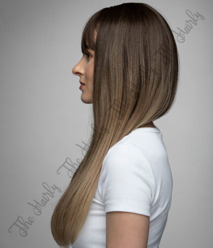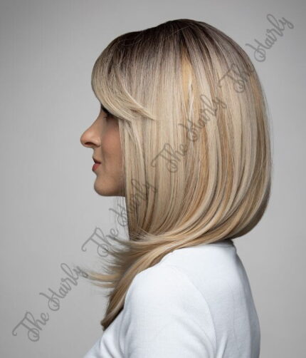 Peruka mieszana Celeste posiada 60% włosów naturalnych w swoim składzie. Szyta na czepku z lace front i ręcznie szytym przedziałkiem. Fryzura sięga 50cm, jest pięknie i kobieco cieniowana. Może być stylizowana do 120 stopni. Czas oczekiwania na wysyłkę wynosi 4-5 tygodni.