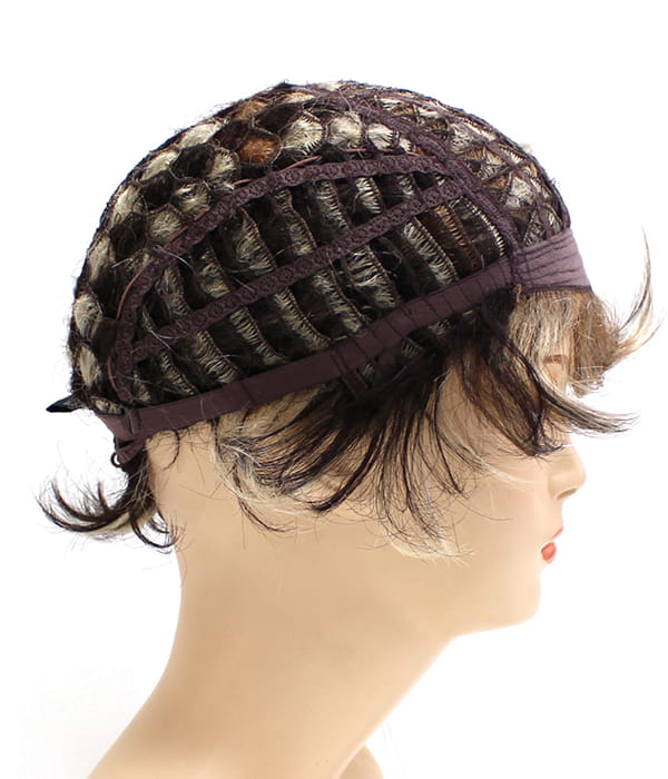 Sposób mocowania (?): Elastyczny czepek tradycyjny z regulacją i możliwością przekładania własnych włosów przez przeszycia czepka