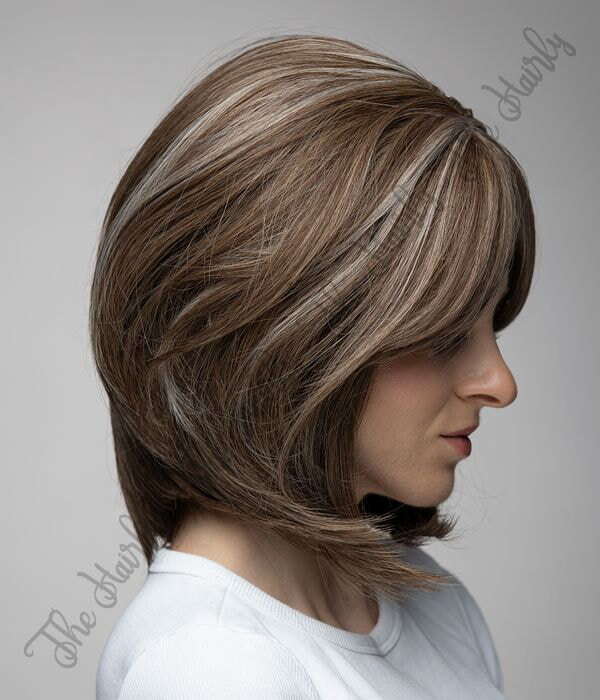Urocza peruka syntetyczna w kolorze zimnego brązu z jasnymi pasemkami jest idealnym rozwiązaniem dla zwolenniczek krótkiej cieniowanej fryzury bob. Nowoczesne strzyżenie podkreśli rysy twarzy a jasne pasemka sprawiają, że fryzura jest bardziej przestrzenna. Możliwa stylizacja do 160 stopni. Zdjęcia odzwierciedlają prawdziwy wygląd peruki.