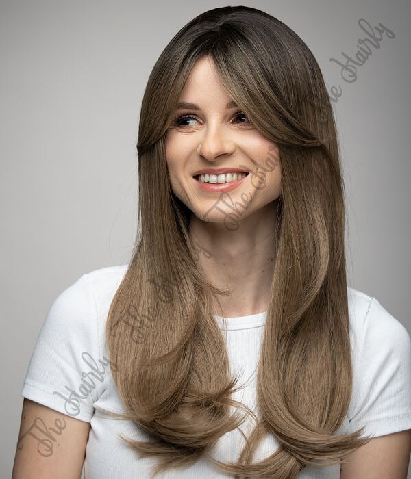 Piękna peruka syntetyczna w kolorze ciemnego blondu ombre posiada fakturę prostą i delikatną grzywkę. Peruka odpowiednia dla osób po utracie włosów, ale także dla tych którzy chcą natychmiastowej zmiany wyglądu. Możliwa stylizacja do 160 stopni. Włosy są lekkie, gładkie i bez połysku. Zdjęcia odzwierciedlają prawdziwy wygląd peruki. Czas oczekiwania na wysyłkę wynosi 3-4 tygodnie.