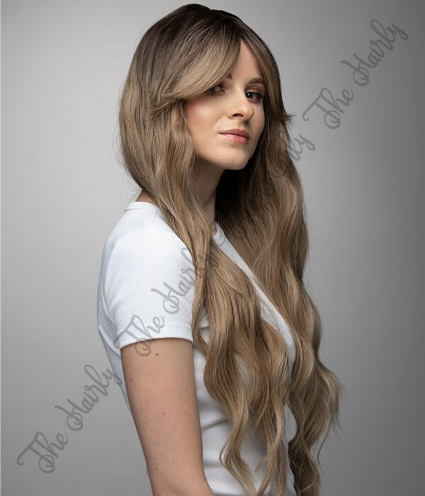 Peruka syntetyczna ciemny blond ombre lekkie fale