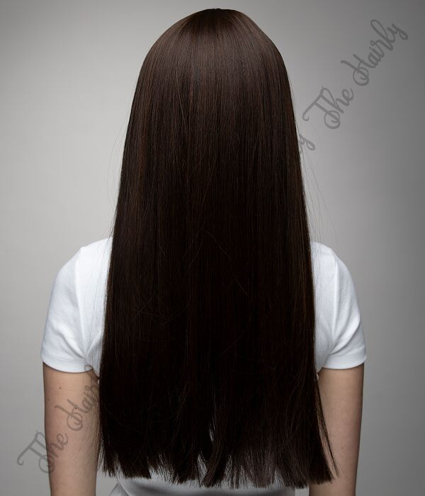 Piękna peruka syntetyczna w kolorze ciemnego brązu z pasemkami posiada fakturę prostą i delikatną grzywkę. Peruka odpowiednia dla osób po utracie włosów, ale także dla tych którzy chcą natychmiastowej zmiany wyglądu. Możliwa stylizacja do 160 stopni. Włosy są lekkie, gładkie i bez połysku. Zdjęcia odzwierciedlają prawdziwy wygląd peruki. Czas oczekiwania na wysyłkę wynosi 3-4 tygodnie.