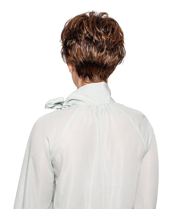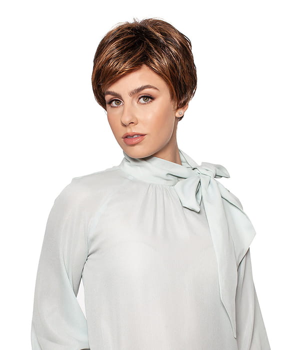 Peruka Khloe to śliczna peruka, lekko cieniowana i bardzo kobieca. Daje wiele możliwości stylizacji czy też ułożenia przedziałka na różne strony. Górne pasma są dłuższe i dość mocno wycieniowane. Pamiętaj, podklejanie nie jest konieczne – peruka jest gotowa do nałożenia od razu po wyjęciu z pudełka. Peruka jest niesamowicie wygodna i przewiewna.
