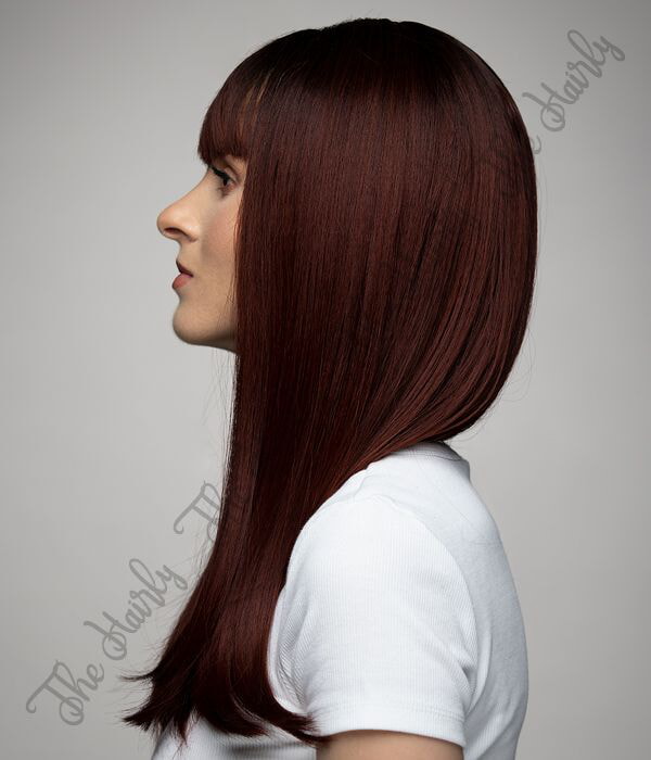 Piękna peruka syntetyczna w kolorze śliwkowej rudości z grzywką. Włosy są tej samej długości od nasady po końce. Peruka odpowiednia dla osób po utracie włosów, ale także dla tych którzy chcą natychmiastowej zmiany wyglądu. Możliwa stylizacja do 160 stopni. Włosy są lekkie, gładkie i bez połysku. Zdjęcia odzwierciedlają prawdziwy wygląd peruki. Czas oczekiwania na wysyłkę wynosi 3-4 tygodnie.
