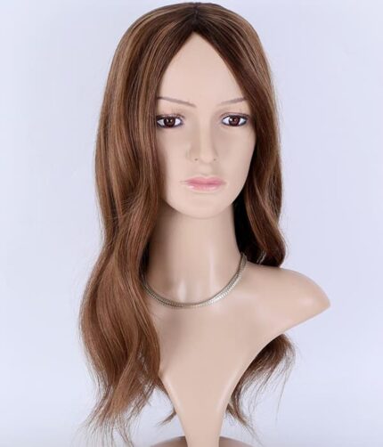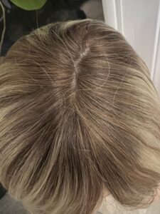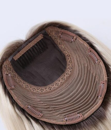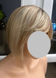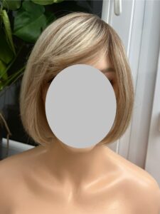 Rozmiar bazy to 16,5×16,5cm, a gęstość to 150%. Idealnie rozwiązanie na co dzień aby zagęścić fryzurę. Jest to produkt zagęszczający nie tylko czubek głowy i przedziałek ale także boki i tył. Przedziałek wykonany jest na lewym boku i posiada mikroskórę. Ze względu na sporą gęstość i niewielką bazę topper jest lekki i niewyczuwalny na głowie. Grzywka sprawia że idealnie zamaskujesz linię między topperem a czołem. Nikt nie zauważy że masz cokolwiek na głowie! Ważne jest także aby dobierać długość włosów tupetu do Twojej długości włosów. Czas oczekiwania na wysyłkę wynosi 4-5 tygodni.