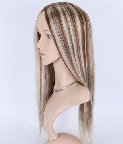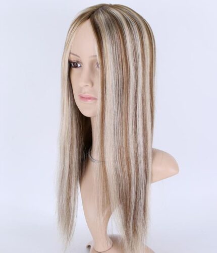 Topper naturalny mono top wykonany w 100% z włosów naturalnych, zawierający mikroskórę na całym obszarze bazy. Montowany na 4 spinki clip-in, długość włosów 30cm. Jeśli potrzebujesz więcej spinek oczywiście możesz je doszyć samodzielnie, konstrukcja bazy na to pozwala.
